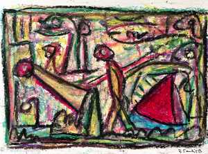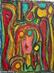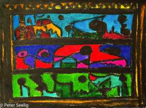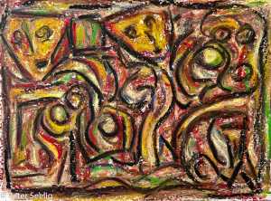 In The "Diary OF A Traveller", distinguishes itself from "In A Blue Mood Beyond The Visible " in its line quality which seems to link up in a type of script form which may reference human history as well as the differences in mediums and energy cycles of the coexistence of diurnal and nocturnal worlds.